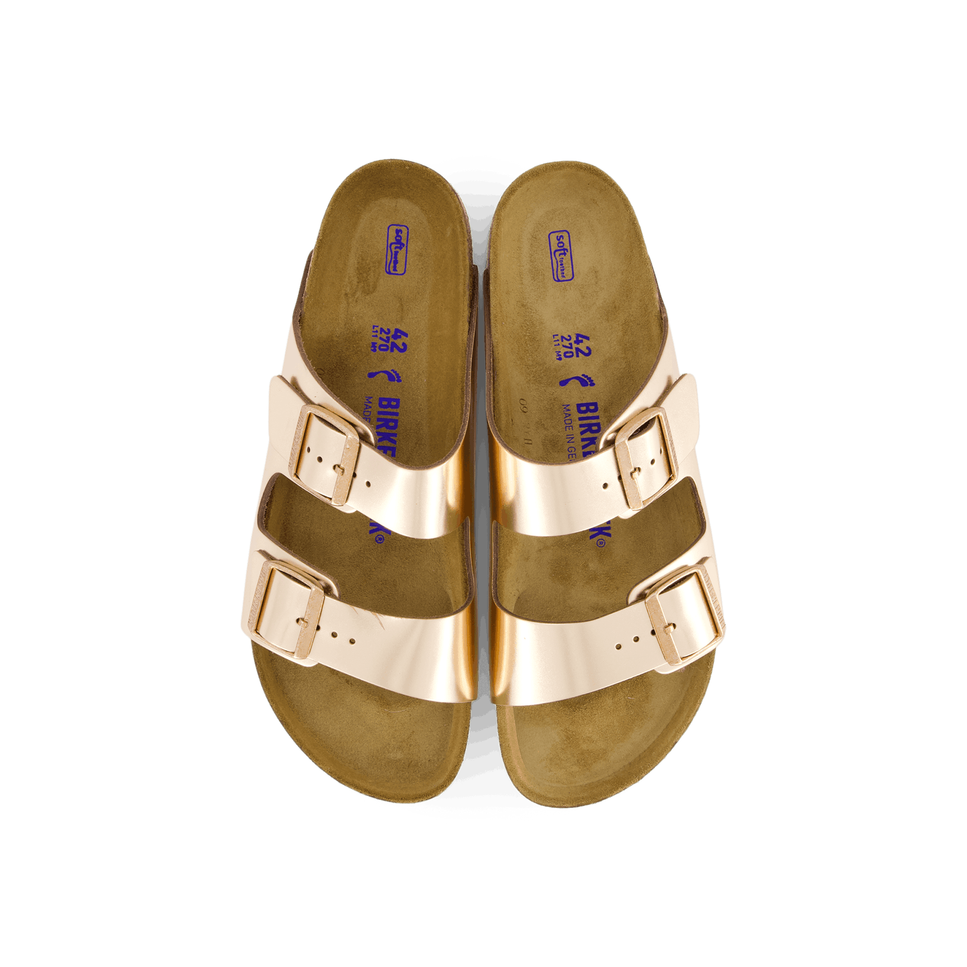 Arizona Slim en cobre metálico presenta la plantilla suave original de Birkenstock que está construida anatómicamente.